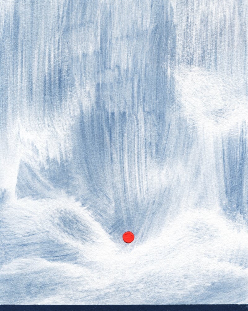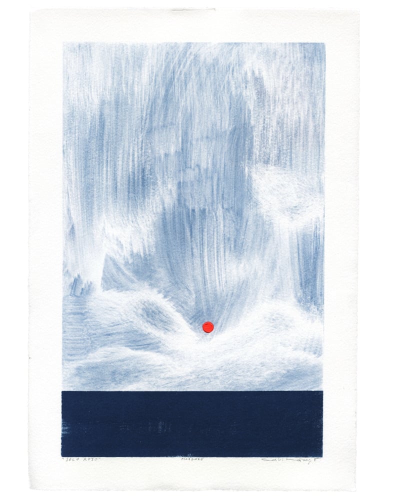 Experimental cyanotype + fluorescent acrylic on 300 gsm cotton paper, entirely handmade.